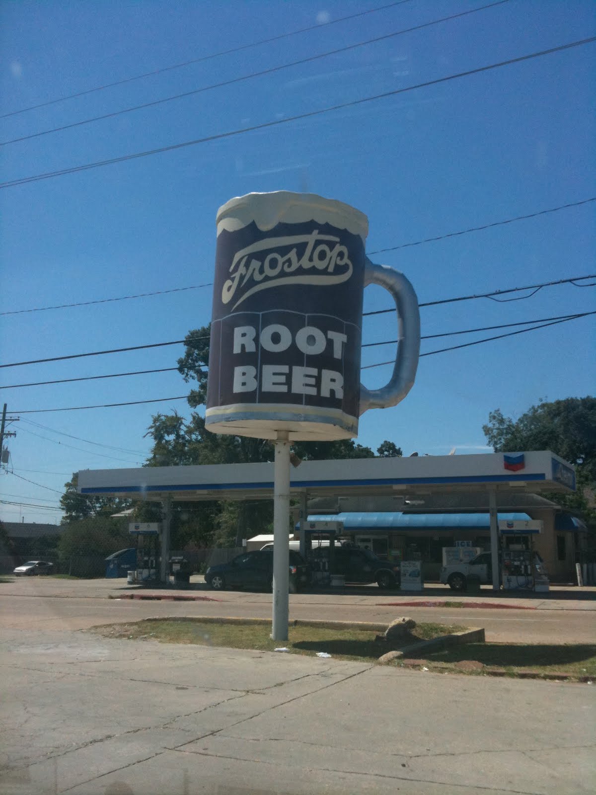 On our way out of town, we caught another roadside attraction: the Upside Down Frostop Rootbeer Mug. It was turned upside down in Hurricane Katrina and they kept it that way.